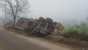 सोहलपुर रोड से आ रहा ट्रोला और अनियंत्रित होकर गेहूं के खेत में गिर गया ट्रोला बजरी...