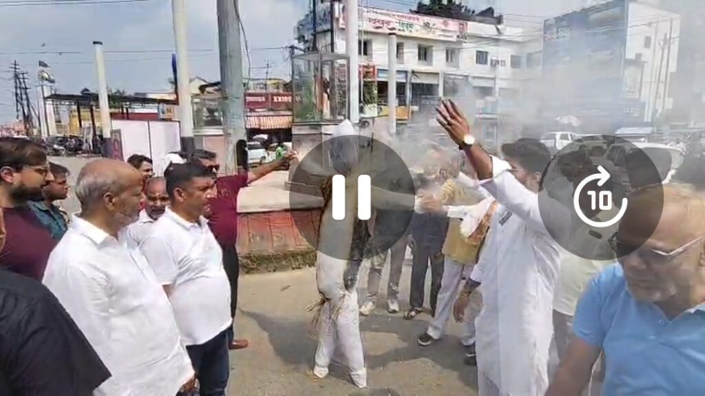 बता दे कि रविवार को कुछ राजनीतिक लोगों से द्वारा सोशल मीडिया पर एक परीक्षा का पेपर लीक होने का आरोप लगाया गया था। जिससे बाद जमकर हंगामा हुआ था। जिसके बाद आज महानगर कांग्रेस कमेटी के द्वारा उत्तराखंड की भाजपा सरकार पर पेपर चोर का आरोप लगाकर उत्तराखंड सरकार का पुतला दहन किया गया है। इसके साथ ही भाजपा सरकार के खिलाफ जमकर नारेबाजी की गई है। इस मौके पर महानगर कांग्रेस कमेटी के अध्यक्ष राजेंद्र चौधरी ने भाजपा सरकार पर युवाओं के भविष्य से खिलवाड़ करने का आरोप लगाया है। साथ ही दोषियों पर कड़ी कार्यवाही करने की मांग की गई है। इस पुतला दहन के दौरान मौके पर पुलिस बल भी मौजूद रहा है। इस मौके पर बड़ी संख्या में कांग्रेस नेता और कार्यकर्ता मौजूद रहे है।