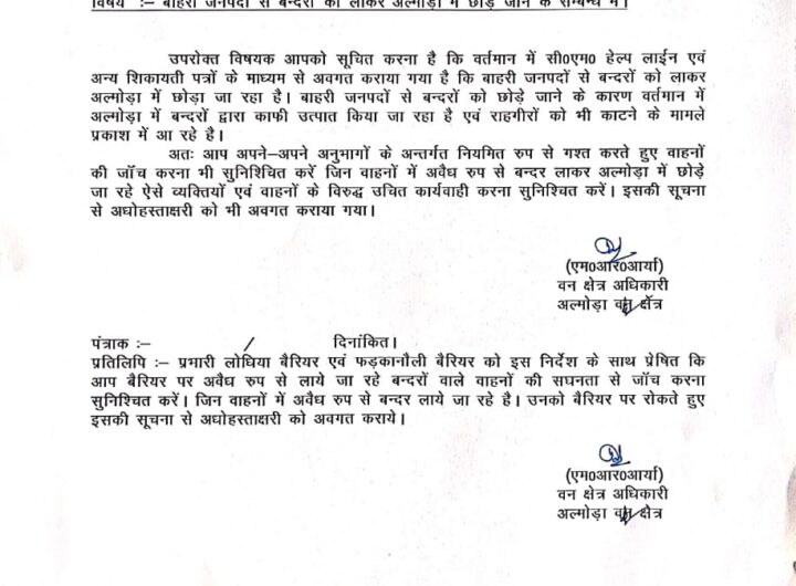 बंदर समस्या पर प्रशासन की दोहरी चाल: एक जागा, दूसरा अब भी खामोश! 1 min read उत्तराखंड एक्सक्लूसिव क्राइम खास खबर भगवानपुर राष्ट्रीय रुड़की वायरल न्यूज़ हरिद्वार बंदर समस्या पर प्रशासन की दोहरी चाल: एक जागा, दूसरा अब भी खामोश! इंडिया खबर9 August 1, 2025 अल्मोड़ा नगर क्षेत्र में कृत्रिम रूप से छोड़े जा रहे कटखने बंदरों की समस्या लगातार गहराती जा...Read More